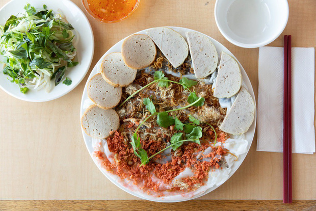 At the restaurants in Little Saigon area, the generation of Vietnamese people who always made traditional rolls before, families like Mr. Hong Pham's house also focus on the modernity of the dish. They like to experiment, make a light yellow dough with turmeric or make vegetarian rolls with jackfruit filling, served with soy sauce instead of fish sauce. Steaming an egg and a roll is also a method to get a new egg, delicate taste.
